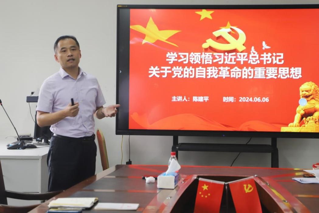 课上,陈建平指出,习近平总书记在二十届中央纪委三次全会上的重要讲话,深刻阐述了党的自我革命的重要思想,科学回答了我们党为什么要自我革命、为什么能自我革命、怎样推进自我革命等重大问题,明确提出了推进自我革命“九个以”的实践要求,为新时代新征程深入推进全面从严治党、党风廉政建设和反腐败斗争提供了根本遵循,为做好新征程纪检监察工作提供了强大思想武器和科学行动指南。同时,在围绕“窑洞对”与历史周期率、三次历史决议、党的自我革命三方面内容讲述时他强调:一是延安“窑洞对”是中共党史上的重要事件,对中国共产党和中国的政治发展产生了深远影响历史周期率的概念为理解国家兴衰提供了新的视角——民主监督是跳出历史周期率的关键,也是现代国家治理的核心要素;二是中国共产党的三次历史决议,记载了党在百年奋斗中团结带领人民为争取民族独立、人民解放和实现国家富强、人民幸福的艰苦卓绝而又波澜壮阔的光辉历程,取得的重大成就和历史经验。作为高校教师,我们也要以先锋战士的态度和角色投入到自我革命的伟大实践中去,为学校的高质量发展奉献力量;三是党的自我革命是解决在自身建设和事业发展中存在的各种问题,有效清除自身存在的各种不健康因素,勇于自我革命是我们党历经百年沧桑更加充满活力的成功秘诀。在我校高质量发展过程中,我们也需要战胜各种艰难险阻和困难挑战,持之以恒进行自我革命。
