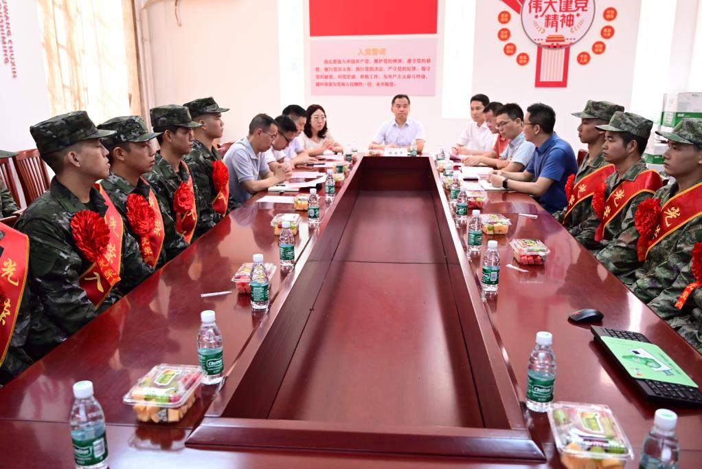会上,黄咸强介绍了我校秋季大学生入伍情况。19名广航热血男儿身着戎装,胸戴大红花,肩披绶带,个个精神饱满。大家结合自身入伍初心和学校教育管理服务的助力,感恩学校帮助他们实现投身国防建设的军旅梦想。与会老师鼓励大家在新征程中为国尽忠,奋勇争先,勇创佳绩。