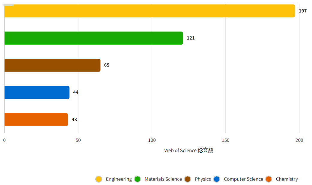 在科研方向上,我校科研论文的ESI学科类型主要集中于工程学、材料科学、物理、计算机和化学等学科。其中,工程学是我校最为活跃的学科,成果累计发表197篇,是我校有望进入ESI前1%最有发展潜力的学科。同时,工程学、材料科学和化学这3个学科的学科规范化的引文影响力(简称“CNCI”)都高于全球平均水平。这表明广州航海学院在这些学科领域的论文质量较高,对学术界具有重要影响。