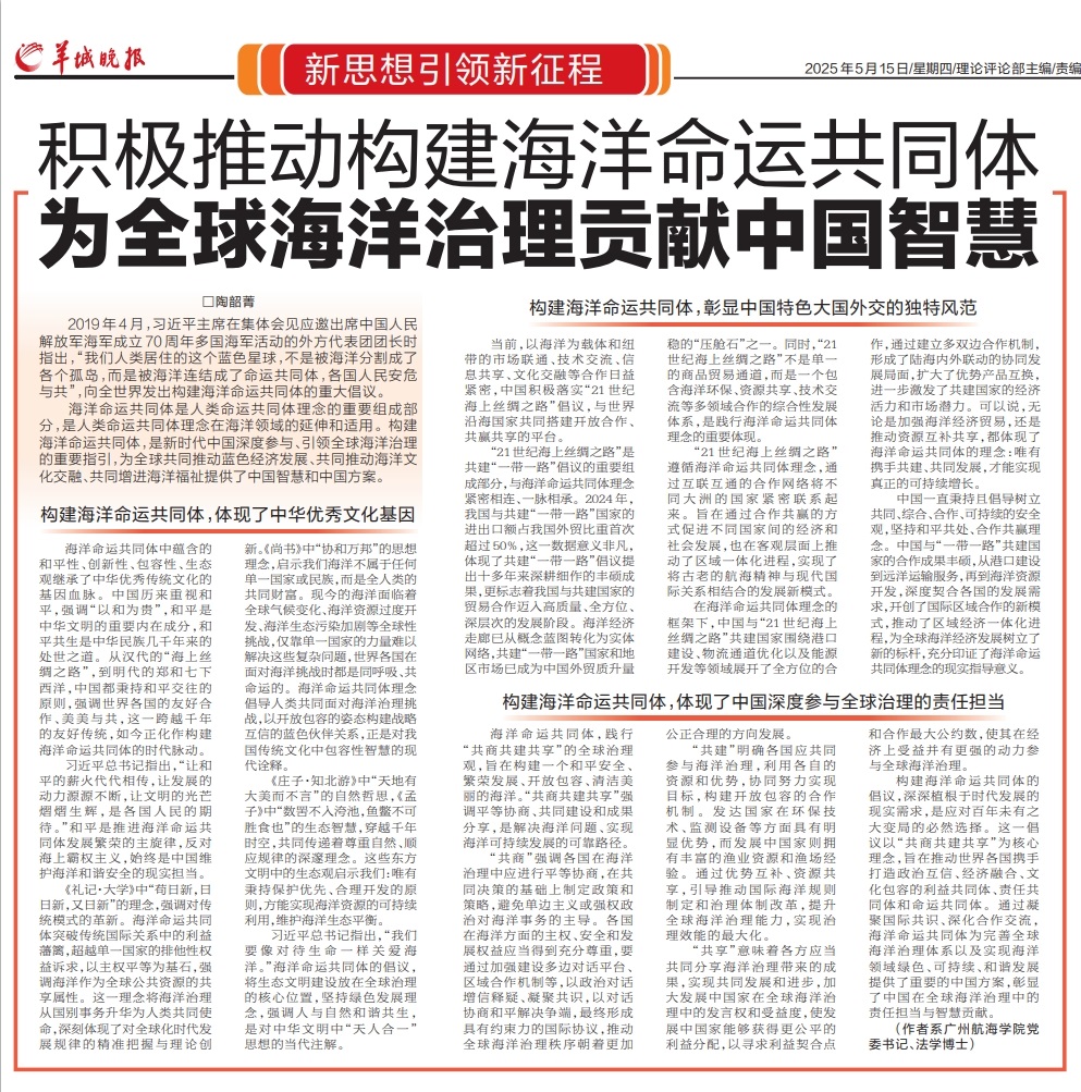 此次陶韶菁的文章被《羊城晚报》及“广东学习平台”两大权威媒体相继刊发,既是对其学术价值的认可,也体现了广州航海学院在海洋战略研究领域的前沿地位。文章从历史纵深到当代实践,从文化传承到国际治理,为全球海洋可持续发展贡献了理论新声。