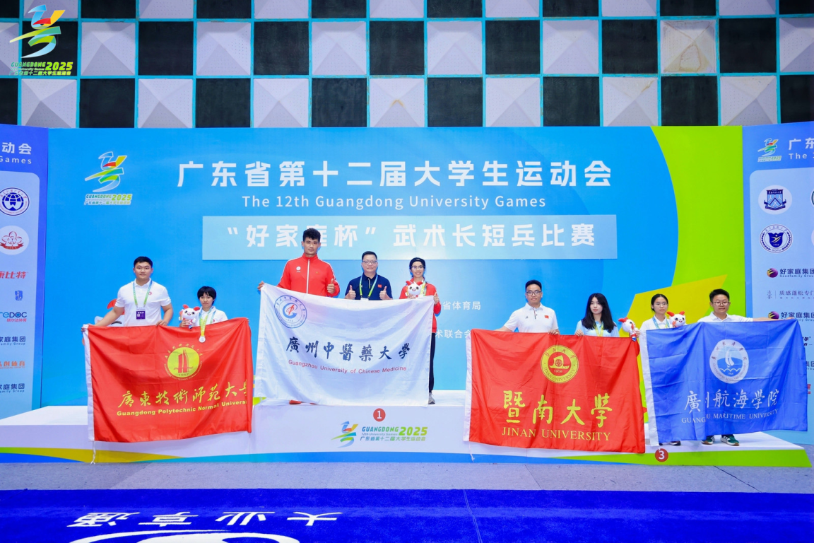 5月19日至21日,广东省第十二届大学生运动会武术长短兵项目比赛在暨南大学(石牌校区)举办。广州航海学院智能制造学院车辆工程241班的刘铭欣同学斩获女子短兵55公斤级铜牌,阙永伟老师和智能制造学院车辆工程231班的史梓煌分获教练员“体育道德风尚奖”和运动员“体育道德风尚奖”。