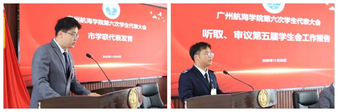 大会听取了张志龙同学代表第五届学生会所作工作报告,大会选举了邬沛江、许智捷、杨秋、杨津津、张子龙、张兆冉、林芯锐、林家星、罗琳、罗嘉乐和黄宋阳11名同学为广州航海学院第六届学生会委员会委员,选举杨津津、张子龙、张兆冉、林芯锐和黄宋阳5名同学为广州航海学院第六届学生会主席团成员。
