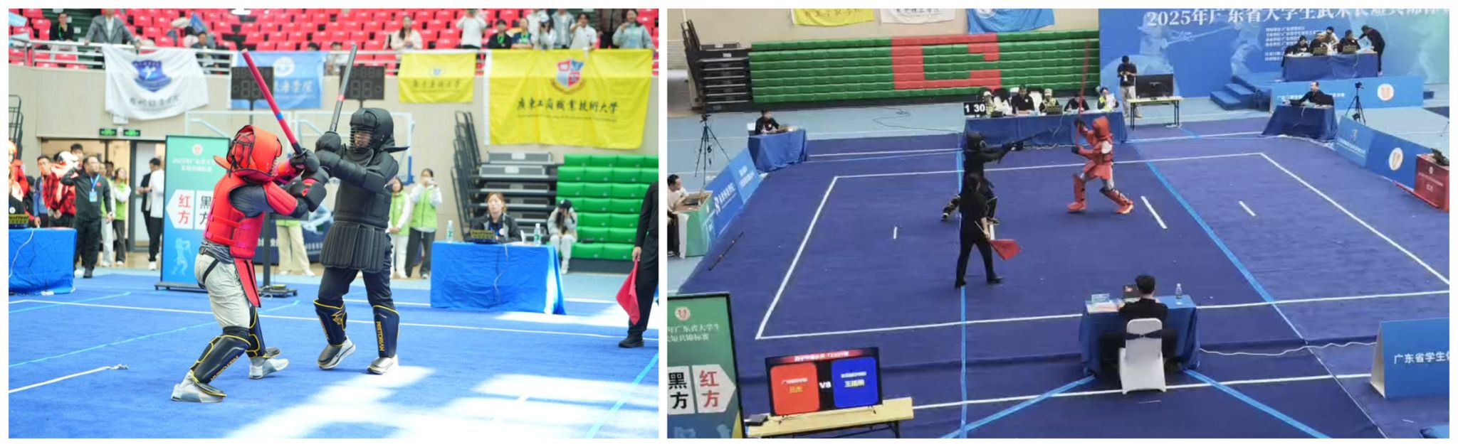 本次赛事由广东省教育厅指导、广东省学生体育艺术联合会主办,吸引了全省40所高校的461名运动员同台竞技,设有甲组、乙A组、丙组三个组别,涵盖男女各8个公斤级别,共开展300余场专业对抗赛,是该赛事创办以来规模最大、参赛人数最多、竞争最激烈的一届。广州航海学院武术长短兵队在教练阙永伟、领队姚凌紫两位老师的带领下,出征甲组赛事,面对强劲对手,队员们沉着应战、奋勇拼搏,最终脱颖而出,荣获佳绩。