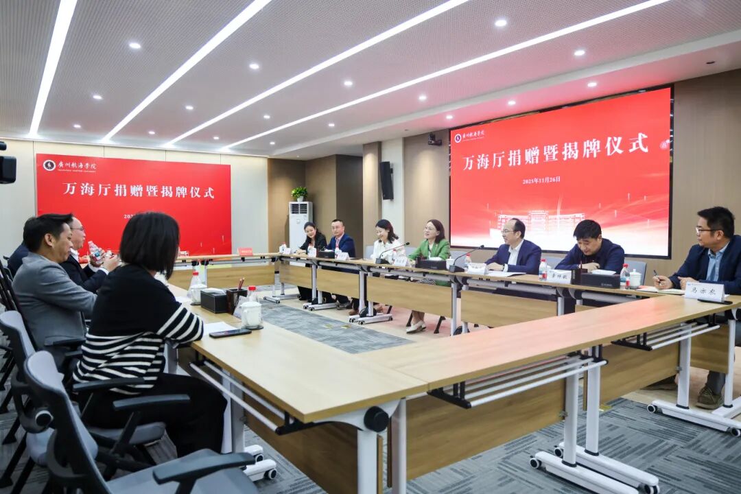 冬阳沐校园,情谊暖人心。11月26日,广州航海学院万海厅捐赠暨揭牌仪式在黄埔校区隆重举行。广航院党委书记陶韶菁,广东巨三集团有限公司副总裁、学校95级工业与民用建筑专业校友卢任贵、广州市林鼎装饰工程有限公司总经理、学校96级建筑装饰专业校友万桂林出席仪式,校党委副书记胡命杰主持仪式。