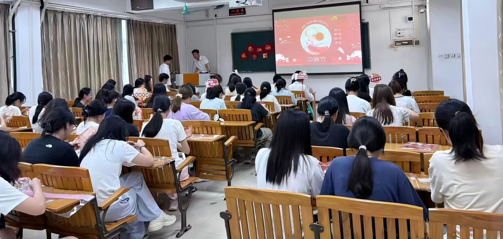 后勤人员与师生共同庆祝中秋节活动