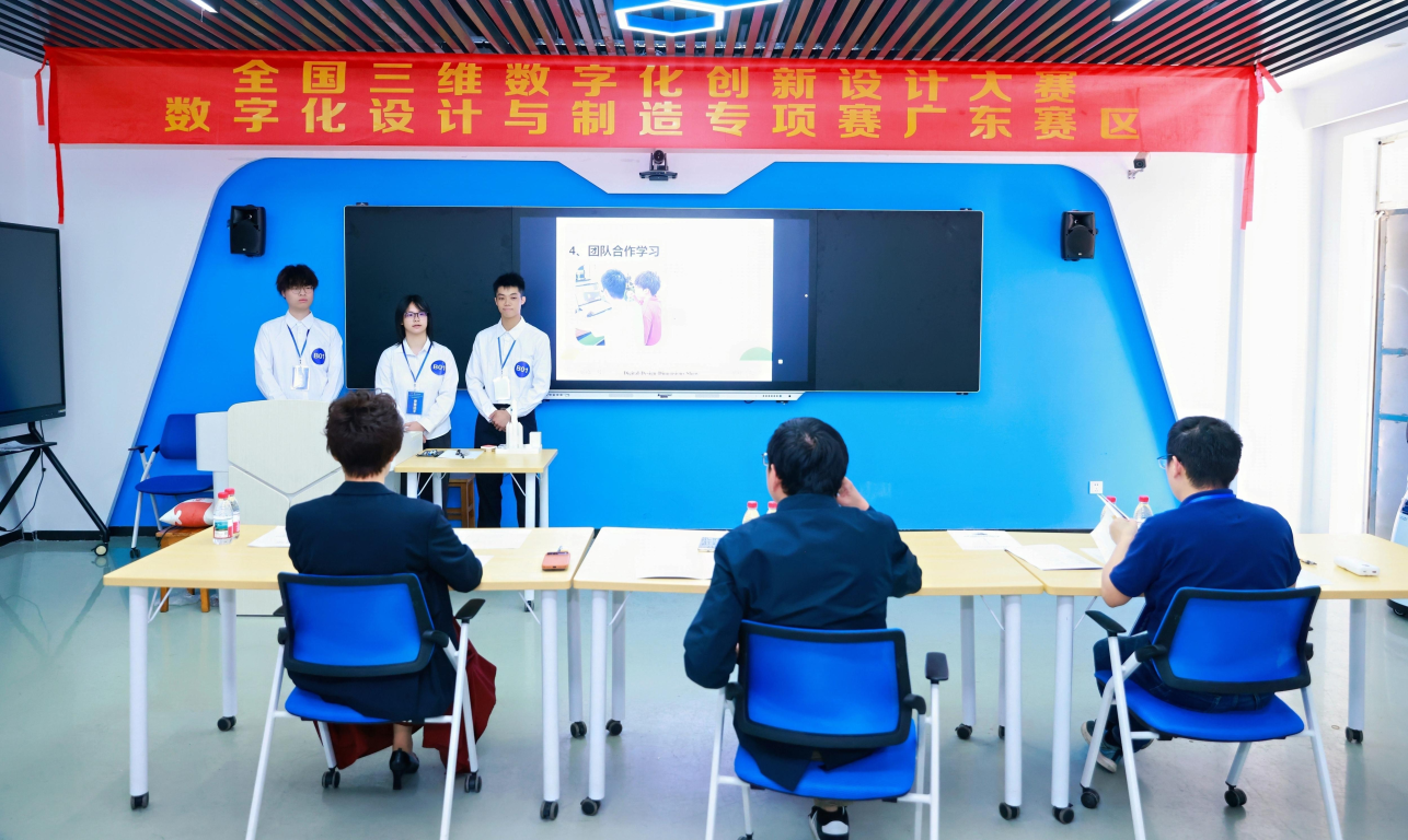 全国3D大赛是国家大力实施创新驱动发展战略、推动实体经济和数字经济融合发展的时代背景下举办的一项大型公益赛事。该赛事以“三维数字化”与“创新设计”为特色,充分体现科技进步与产业升级的需求,是推动大众创业、万众创新的重要实践平台。本次广东赛区专项赛聚焦数字化设计与制造领域的技术创新与实践应用,对参赛作品的创新性、可行性、实用性提出了要求。全省有27所本科院校的73支队伍参赛,竞争尤为激烈。广航院3支参赛队伍沉着应赛,凭借扎实的专业功底和出色的团队协作能力,在限定时间内完成了作品的制作与装配,并通过说明书、PPT汇报、视频等多种形式,系统展示了作品的设计思路与制作流程,最终在专家答辩环节表现优异,取得突出成绩。
