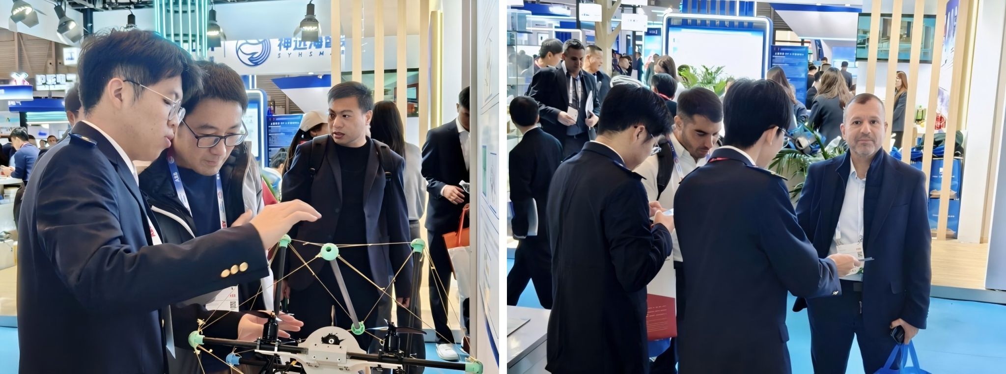 12月2日至5日,2025年中国国际海事会展(Marintec China 2025)在上海举行。广州航海学院选送的《鲲鹏海能——海洋可再生能源岛》《水空两栖智能探测-潜水蝙蝠仿生跨介质扑翼航行器》《三栖智巡——基于多模态运动的极端环境智能巡检机器人》《海空一体化无人监测航行器》创新项目在展会创客展区精彩亮相,吸引了大量中外专业观众、行业专家及潜在合作伙伴的驻足与关注,成为本届海事展上一道亮眼的科技创新风景线。