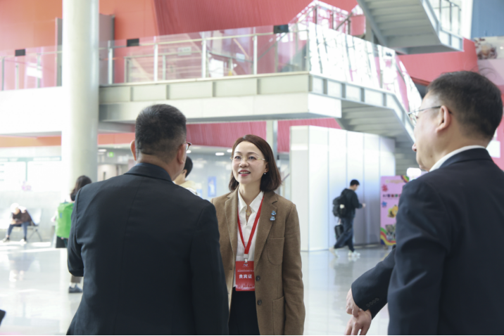 (陶韶菁与参会领导亲切交流)