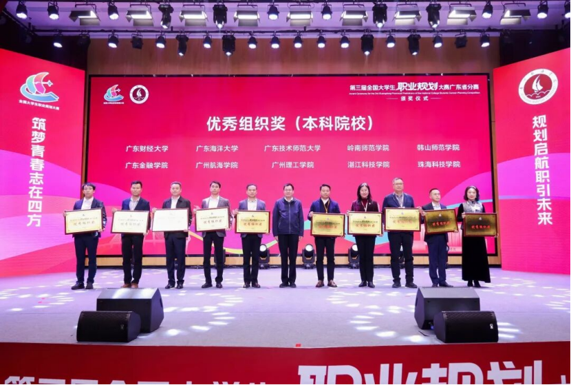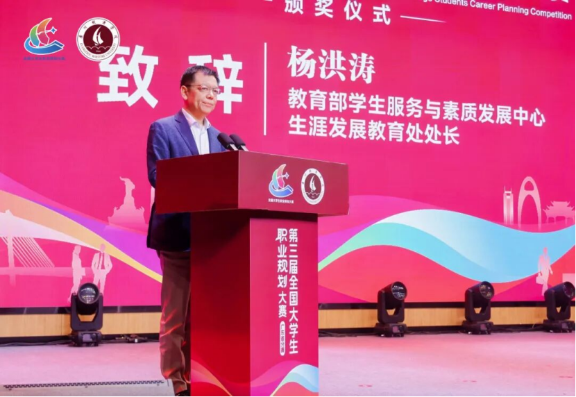 颁奖仪式上,广州航海学院党委书记陶韶菁、教育部学生服务与素质发展中心生涯发展教育处处长杨洪涛、广东省教育厅副厅长程大欣致辞,对大赛的成功举办表示祝贺,对参赛师生的积极参与和辛勤付出给予肯定,并对青年学子的职业发展寄予殷切期望。
