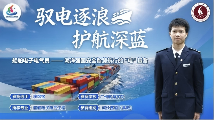 参赛作品是“船舶电子电气员——海洋强国安全智慧航行的‘电’基者”。
