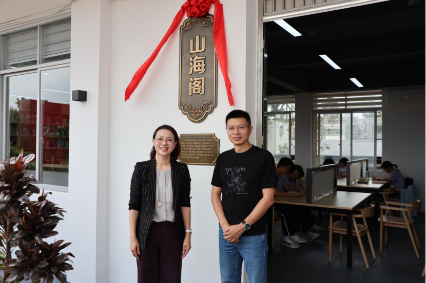 (陶韶菁和黄勇共同为“山海阁”揭牌)