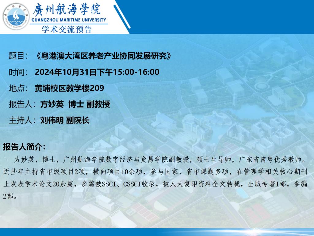 深蓝论坛学术讲座预告:方妙英副教授《粤港澳大湾区养老产业协同发展研究》