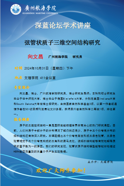 深蓝论坛学术讲座预告:向文昌《弦管状质子三维空间结构研究》