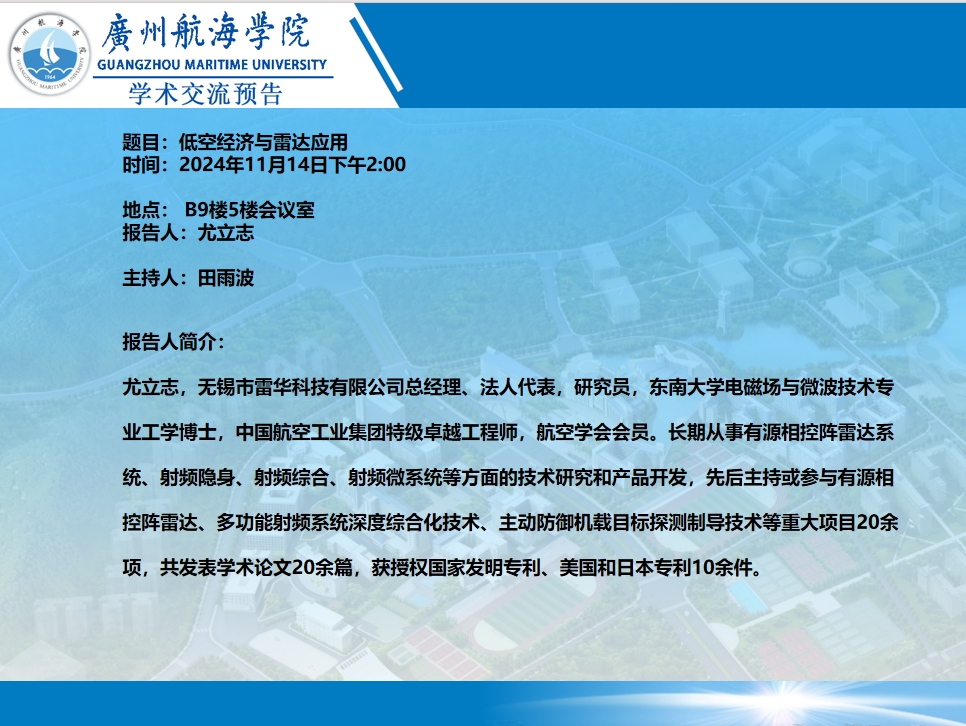 学术讲座预告:尤立志《低空经济与雷达应用》