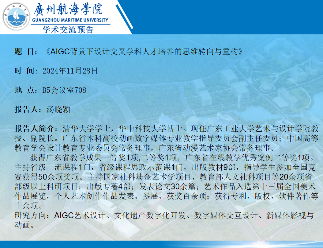 学讲座术预告:AIGC背景下设计交叉学科人才培养的思维转向与重构