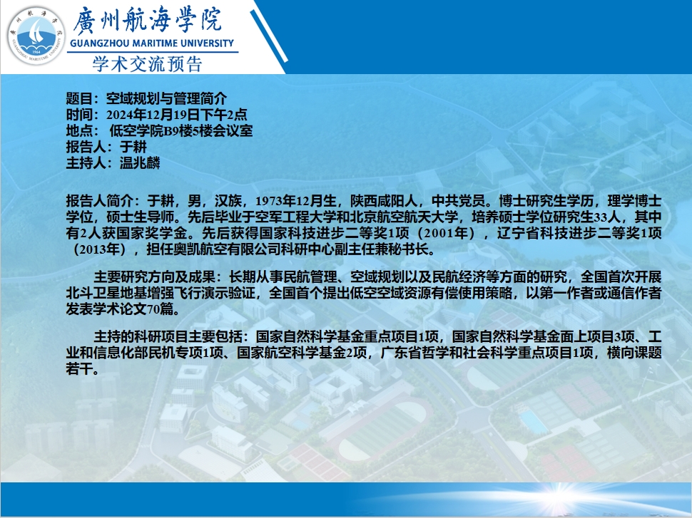 “低空翱翔”系列学术预告:于耕教授 《空域规划与管理简介》