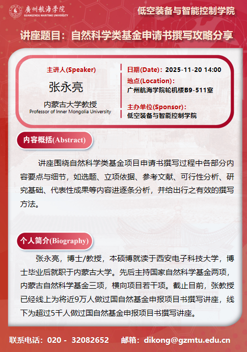 上一条:学术讲座预告:张国斌《Joint Trajectory and Beamforming Optimization for UAV-Enabled SAGIN》 下一条:学术讲座预告:刘锐哲《颗粒增强铝基复合材料压铸成形研究》