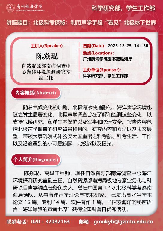 学术讲座预告:陈焱琨《北极科考探秘:利用声学手段“看见”北极冰下世界》