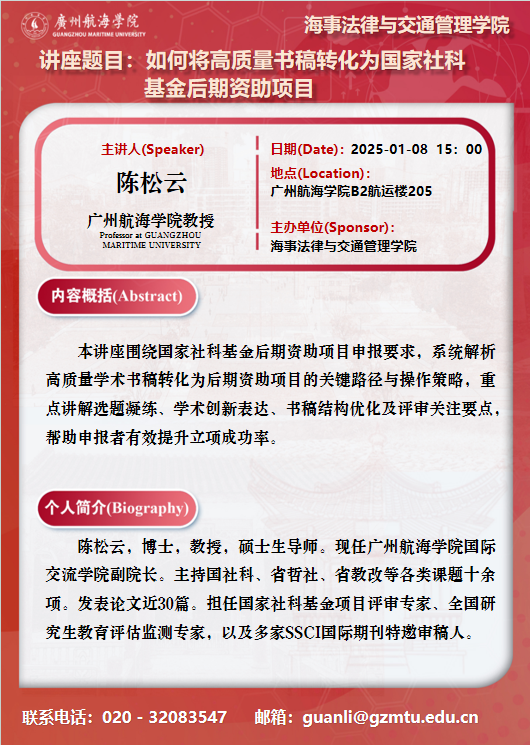 学术讲座预告:陈松云《如何将高质量书稿转化为国家社科基金后期资助项目》