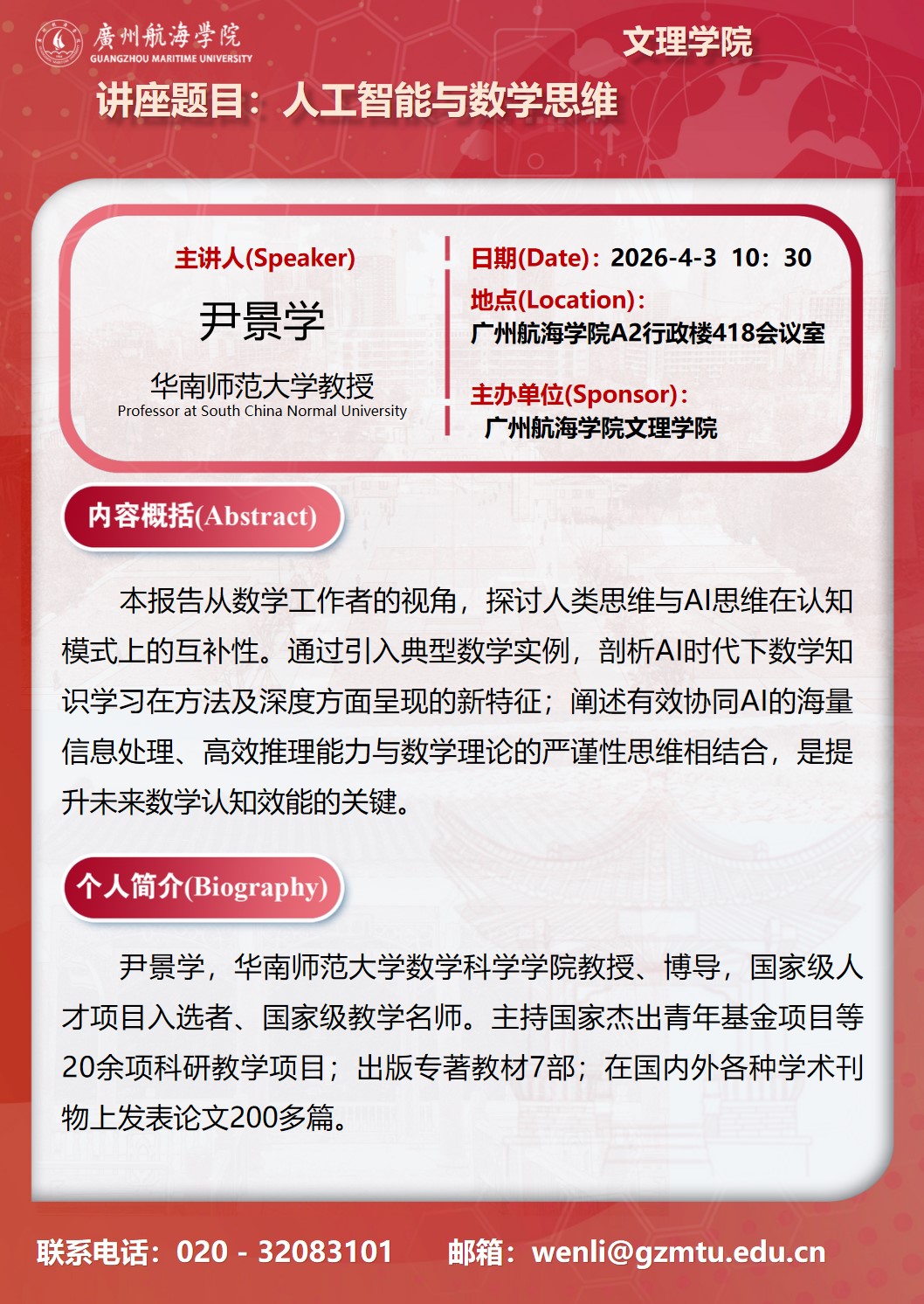 学术讲座预告:尹景学《人工智能与数学思维》